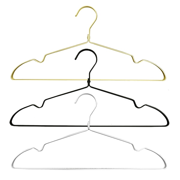 ハンガーそのものの素材自体はあまり多くはない気がしますが、単に木製といっても異なる木の種類から作られていたり、金属ではアルミからスチール、ステンレスなど様々な材質のものがあります。そういった素材からの細かい部分を凝らして見ることで、ディスプレイに統一感を出したり、掛けるものに応じて使い分けたりといったこともできます。