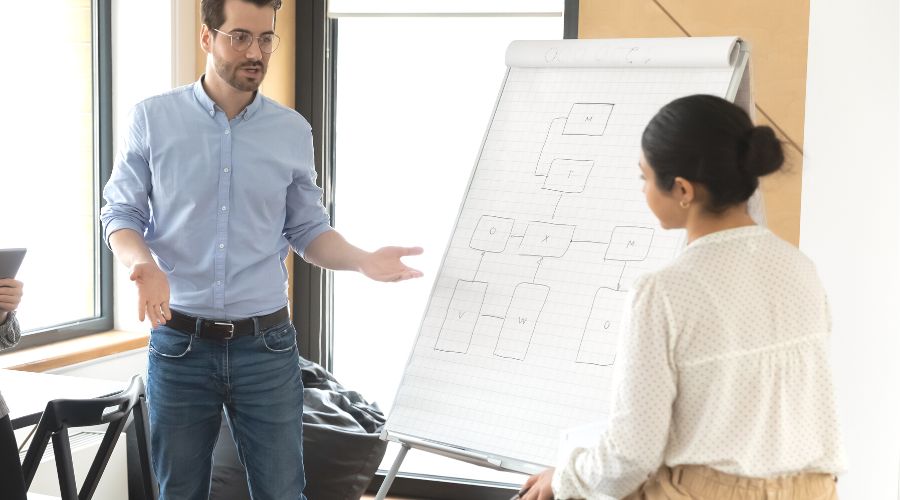 学校での自由研究発表や周辺地域のマップ作製、会社でのプレゼンテーションなどの成果物を大人数に向けて発表する際に使用されることが多いです。用紙自体が大きいため、文字も大きく書くことができ、遠くからでも文字やイラスト、写真などを認識することができます。文字を主体として構成する場合には、バランスの取りやすい方眼の模造紙がおすすめです。模造紙を発表ツールとして用いる際には、読みやすいように整頓されたレイアウトと視認しやすい色を使用することが大切です。また、用紙が大きく、丸めて持ち運ぶことが多いため、大きくて厚みのあるものや繊細なものを貼るのには適していません。