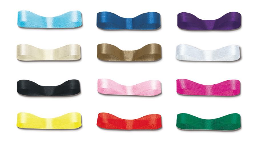赤、白、ピンク、水色、オレンジなど色鮮やかなカラーバリエーションが特徴。リボンの幅も12mmの細いものから、48mmの太いものまで種類があるようです。用途によって使い分けるとよいでしょう。
