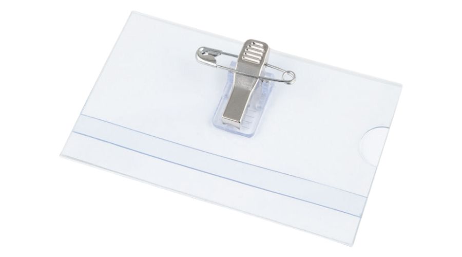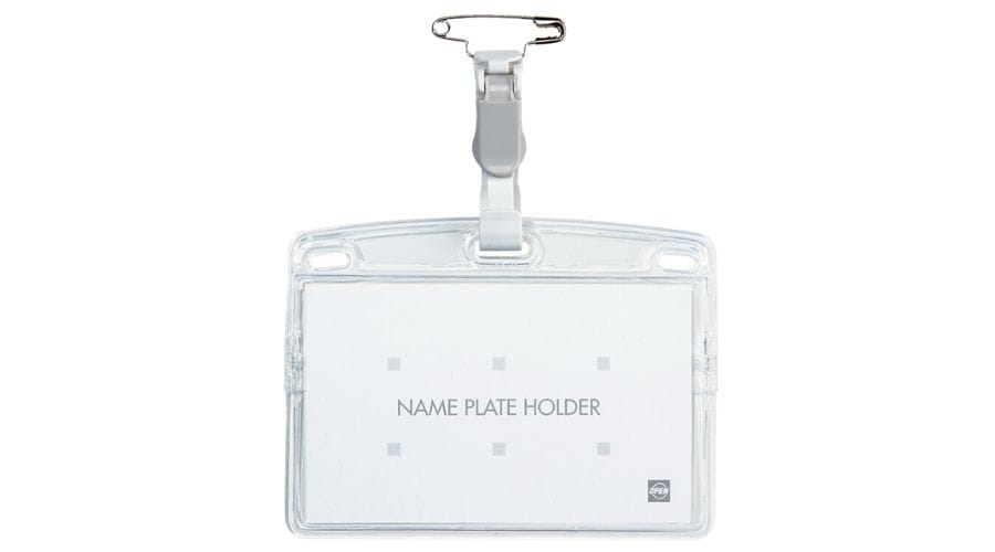 名刺サイズのスタンダードな名札です。安全ピンとクリップがセットになった両用タイプが主流で、胸元にピッタリ固定できるのが特徴です。ハードケースできちっとした印象を持たせ、名刺をそのまま入れたり、中の台紙に記入したりして使用します。