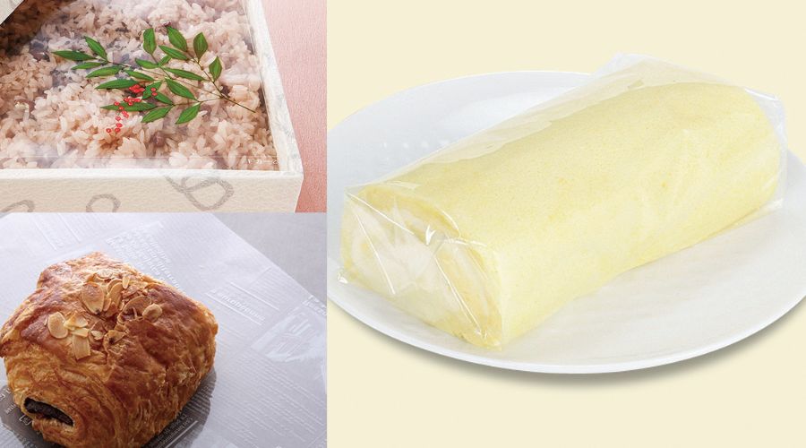 食品用OPPシートを掛けたり、敷いたりすることで、食品の乾燥や汚れを防ぐことが出来ます。お弁当のご飯の部分に掛けてあるのをご存じの方も多いかと思います。また、シフォンケーキやガトーショコラなどのお菓子のラッピングなどに適しており、食品用OPPシートで包むことでお菓子の型崩れを防止する効果もあります。