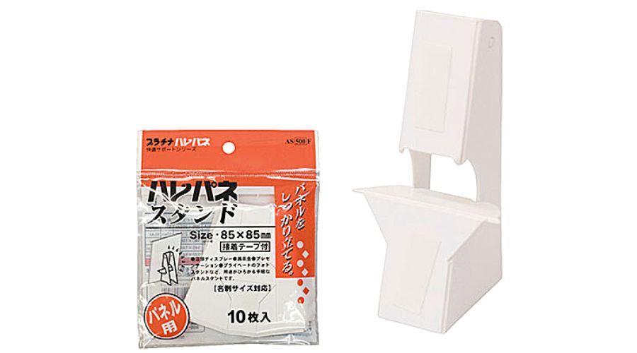 パネルスタンドはパネルの後ろに設置し、パネルが立つように支えるグッズです。紙製やダンボール製のものがほとんどで、軽くて使い勝手のよいのが特徴。パネルスタンドにテープがついているものが便利です。商品によってパネルの対応サイズが違うので、パネルに合ったサイズのものを選びましょう。