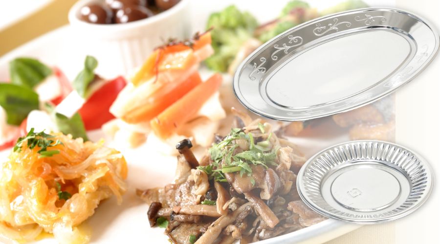 金属のお皿をイメージしたパーティー皿です。オードブルなど、パーティーの大皿料理に持ってこい!電子レンジ使用可能商品、裏面は黒色になっており、お皿の高級感をより引き立たたせている商品など種類も豊富です。