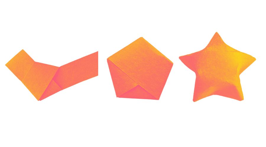 ④星の辺の部分を持ち、内側に押し込んだり、角をつまんだりして星の形を作っていきます。