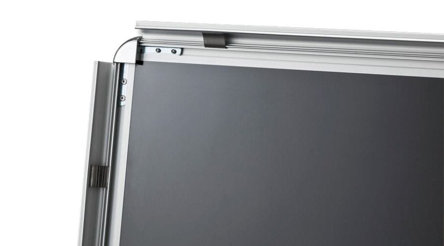 フロントオープン式とも呼ばれる4辺開閉式は、前面のフレーム4辺が開くため、壁に取り付けたまま中身を交換することが可能です。工具も不要でコツいらずなので、頻繁に中身を入れ替えたい方におすすめです。