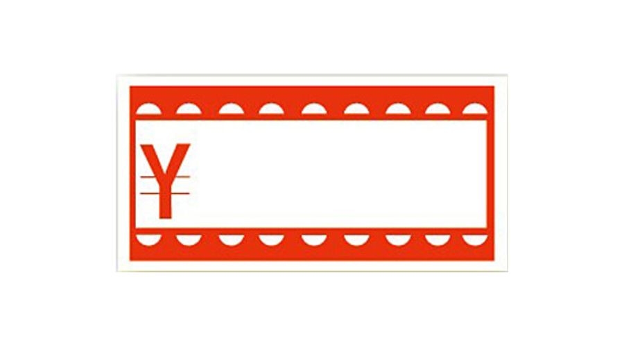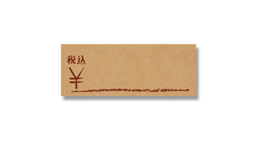 白地に赤文字や青文字で円マークや枠が記載されているタイプです。シンプルで使い勝手がよいのが特徴。文字も細いフォントのものだと上品な印象に。