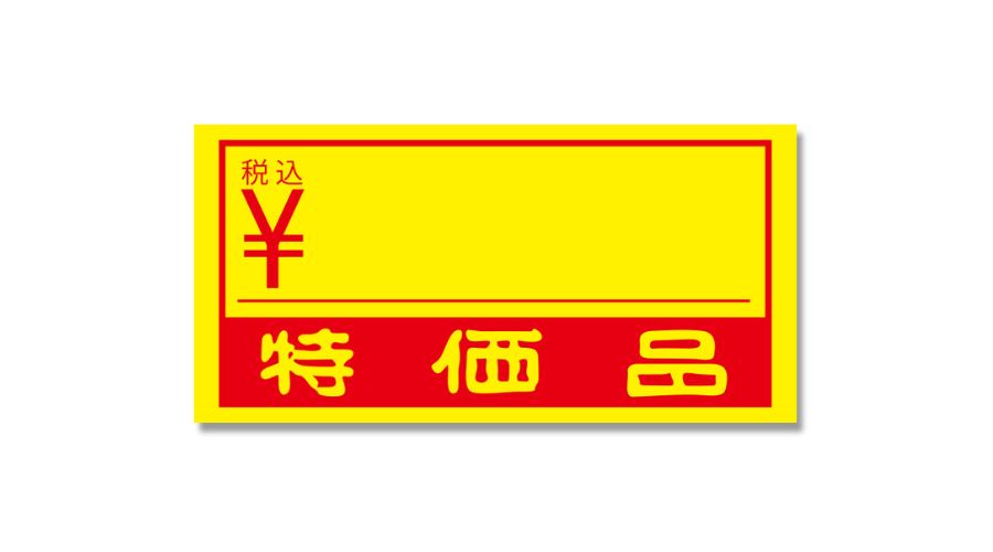 黄色の背景に赤文字のコントラストが印象的で、視認性がよいのが特徴。青果店などでよく使用されています。値段と共に「特価品」と書かれているものもあります。形も四角いものだけでなく、楕円形のものもあります。