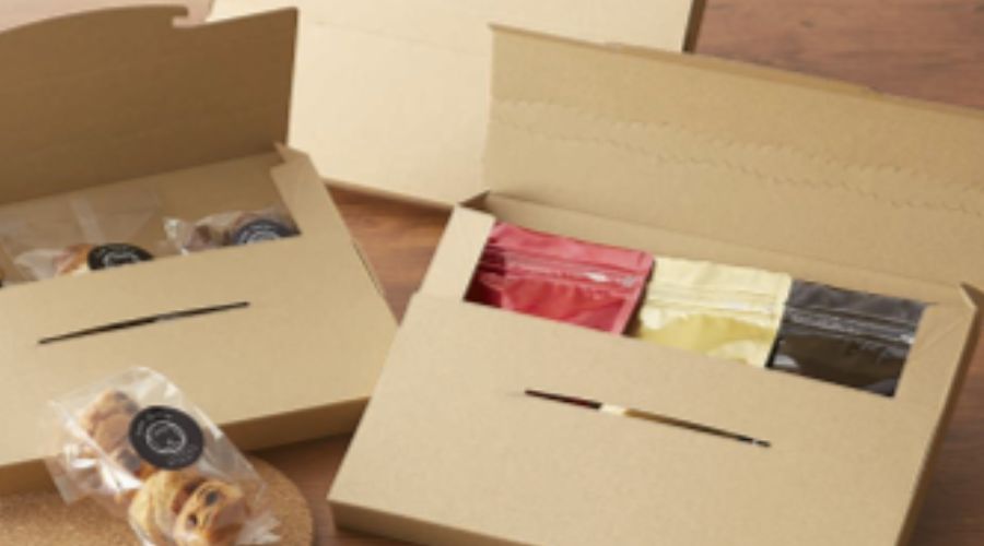 ラクポスBOXの材質は1.1mm厚のFフルートダンボールです。薄くても内容物をしっかり保護します。折り目に沿って折りたたむだけで簡単に組み立てることが可能で、テープ1本で封ができます。
