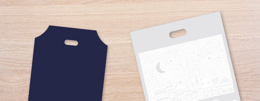 手穴ポリ袋とは、手を通すための穴が開いている抜き手のポリ袋のことです。一般的には、パンフレットの持ち帰りの袋や雑貨店の袋、カフェでのテイクアウトに使用されることが多く、デザインや形状が幅広いことが特徴です。また、長方形や横長の手穴ポリ袋は商品の出し入れをしやすく、扱いやすいことも魅力です。 手穴ポリ袋カテゴリはこちら手穴ポリ袋の形状