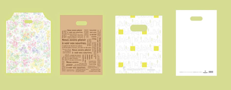 手穴ポリ袋は、形状や素材が豊富で様々な業種や場面でお使いいただけるポリ袋です。よく見られる使い方はパンフレットの持ち帰り用やパティスリーでケーキを持ち帰るための袋としての使い方ですが、青果を詰め合わせて店頭で販売するために使ったり、柄物の手穴ポリ袋は雑貨店の持ち帰り用の袋としても使われます。店舗で扱っている商品や入れたい物に合わせて最適な手穴ポリ袋を使ってみましょう。