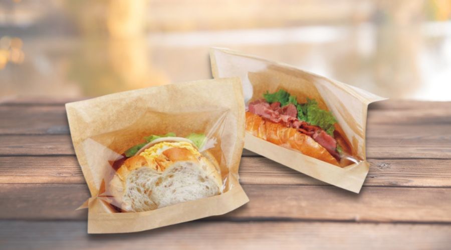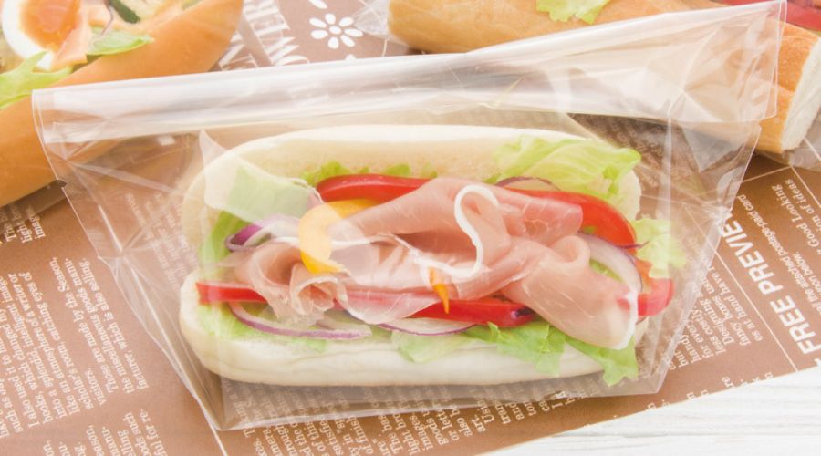 惣菜袋とは、サンドイッチやコロッケなどのお惣菜を入れるのに最適な使い捨て食品袋です。中身がよく見えるOPPフィルムで作られた透明タイプや、紙とOPPを貼り合わせて作られた窓付きタイプがあり、それぞれ与える印象も異なります。