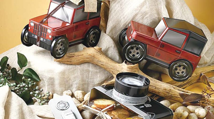 個性的な総柄デザインやかわいい猫などの動物のイラストが描かれている缶です。ギフト包装として最適。バッグのような形状をした取っ手付きの缶やカメラや車などがモチーフになっている缶など、高いデザイン性を活かしてインテリアとして再利用できるものもあります。