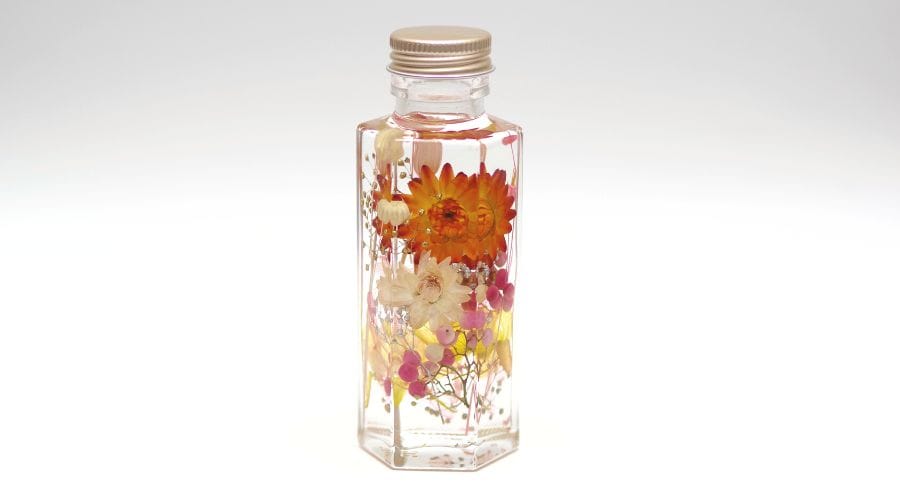 プリザーブドフラワーやドライフラワーを使ってハーバリウムを作るのはいかがでしょうか。簡単に作れてかわいいのでおすすめです。ラッピングにはリボンや透明フィルムを使うのがおすすめ。オーガンジー素材の袋に入れても。