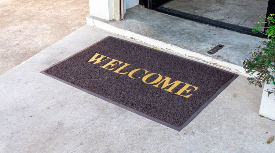 店内の清潔感を保ち、歩行者に安心感を与えるフロアマット。「靴を脱いで」などの文字がデザインされたものもあり、案内にも役立ちます。滑り止めや防塵性能が優れているものを選ぶと良いでしょう。