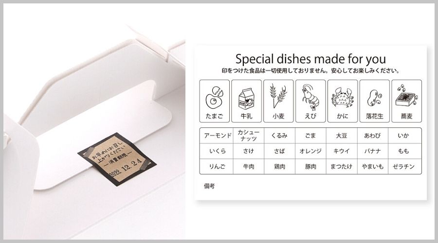 アレルギーなどの注意喚起