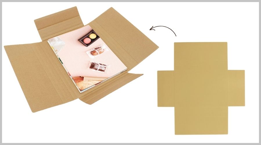 多当式ダンボールは底面に対し、はなびらのようについているフラップを中心に向かって折って梱包します。風呂敷のように全体をしっかり包み込むことができるので、平らなものや薄い書類などの梱包に適しています。カタログやポスター、書類、書籍などの保管や発送におすすめです。段ボール素材のため、中に入れたものが折れにくくなるのも嬉しいポイントです。