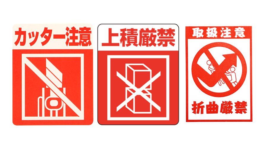 最近では海外への発送も増えていることから、日本語だけでなく、英語、中国語、韓国語など、多言語で記されている注意喚起シールもあります。