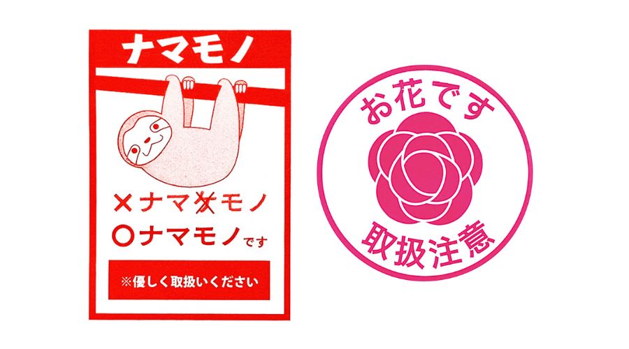 「生もの」や「お花」など、より繊細なものは中身が記された専用シールを貼るとよいでしょう。中身が記されていることによって、より一層注意を促すことが出来ます。