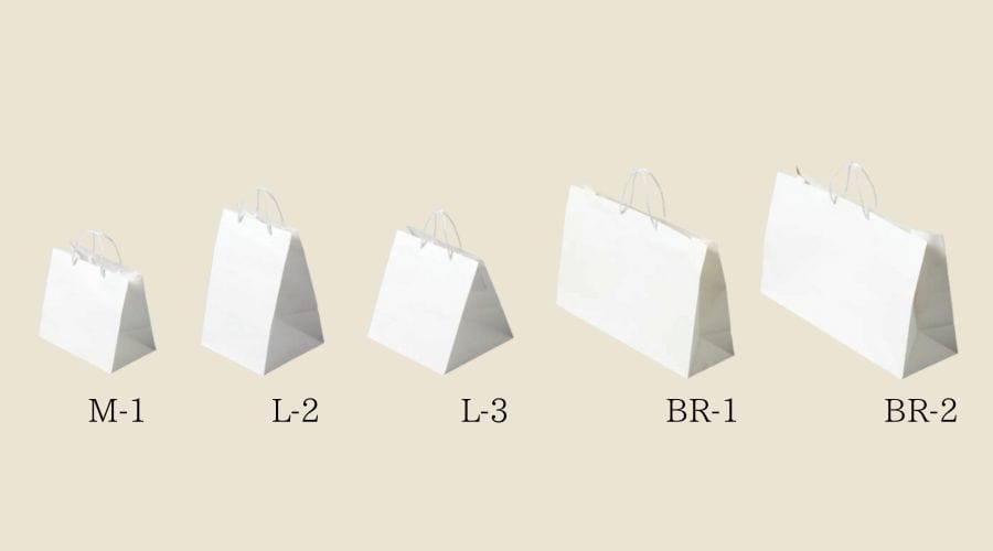 シンプルで清潔感のある白地がポイント。サイズによって、少しつやのある「片艶クラフト紙」とつやの無い「晒クラフト紙」で作られているものに分かれます。
